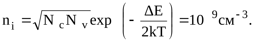 Равновесные концентрации неосновных носителей находятся из закона действующих масс рр0·np0= pn0·nn0 = ni2. Концентрация собственных носителей в кремнии находится из известного соотношения
