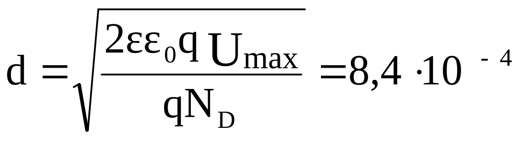 где d – толщина области пространственного заряда, которая будет максимальной при U = Uобр.max.