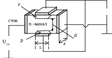концентрация донорной примеси в канале ND = 6·1015 см-3, концентрация акцепторной примеси в p-области затвора NА=1·1018 см-3.