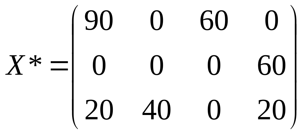 Перевірка останнього плану на оптимальність за допомогою методу потенціалів показує, що він оптимальний. Тому: