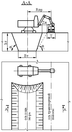 При применении железнодорожного транспорта он располагается на верхней площадке за пределами бермы безопасности ( ), ширина которой определяется по формуле (3.17). Для схемы с применением железнодорожного транспорта делается проверочный расчет по радиусу разгрузки