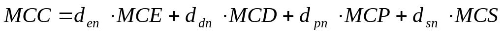 де den , ddn, dpn , dsn — частка відповідних джерел у новій структурі інвестиційного капіталу, коефіцієнт; MCC — гранична ціна інвестованого капіталу, коефіцієнт; MCP — гранична ціна привілейованих акцій компанії, коефіцієнт; MCS — гранична ціна реінвестованого прибутку, коефіцієнт. МСЕ — гранична ціна власного капіталу коефіцієнта; МСD — гранична ціна боргового капіталу коефіцієнта