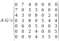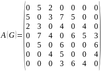 - •Граф g, содержащий 7 вершин задан матрицей смежности a(g), элементы которой определяют расстояния между связанными вершинами.