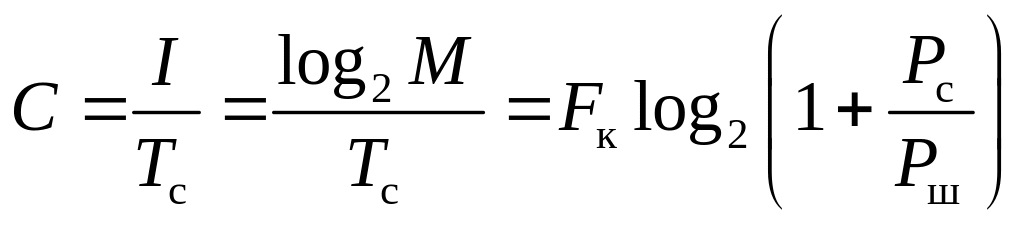 Поскольку все сигналы равновероятны, то вероятность выбора одного конкретного сигнала равна Pi = 1/М. Очевидно, что число битов информации, которое можно безошибочно передать за время Тс , при этом составит