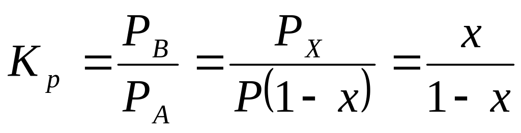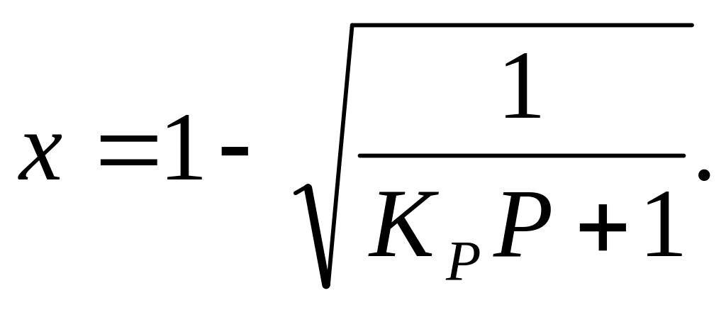В этом случае задаются значениями х от 0,05 до 0,95 (через 0,1) и для всех заданных Р вычисляют Кр. Затем строят вспомогательный график Кр = f(х,P) и, пользуясь вычисленными по уравнению (32) или (36) значениями Кр, определяют с помощью графика фактическое значение х.
