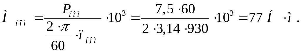 — номінальна потужність при роботі в тривалому режимі Рном = 7,5 кВт;