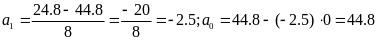 Приклад 2.3. Використовуючи вихідні дані приклада 2.2, знайдемо оцінки параметрів моделі а0 і а1 , розбивши попередньо вибірку на дві частини.