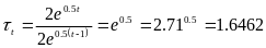 Розрахуємо ланцюгові абсолютні прирости за формулою Δyt = yt -yt-1 . Знаючи аналітичну формулу, можна знайти вираз для абсолютних приростів, тобто Δyt = 2e0.5t – 2e0.5(t-1) = 2e0.5(t-1)(e0.5-1) .
