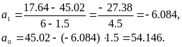 Таким чином, модель має вигляд y = 54,146 - 6,084x;.