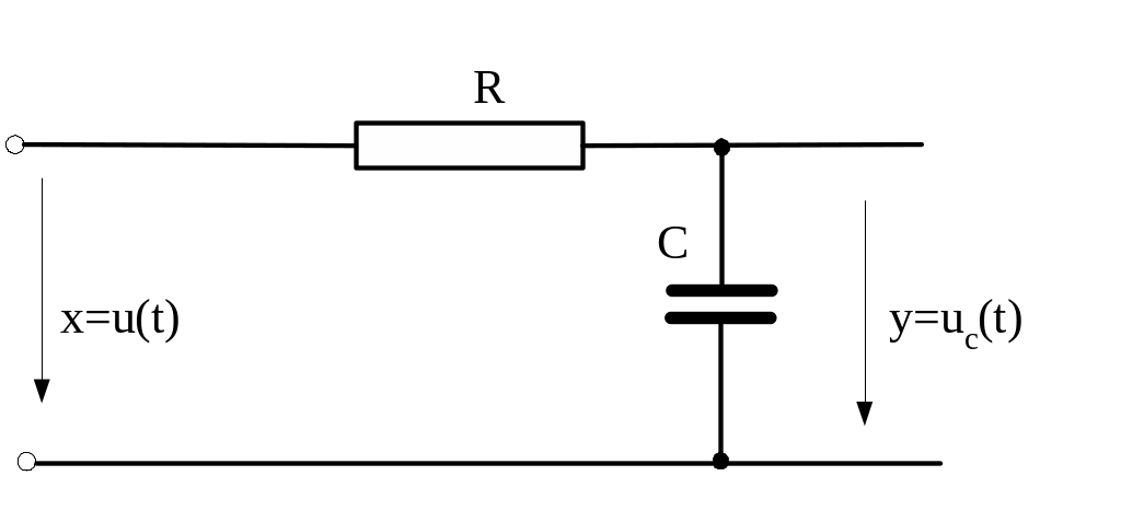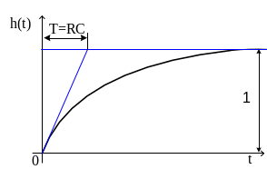 Простейшим примером такого звена является RC-цепь, если в качестве входной величины рассматривать входное напряжение u(t), а в качестве выходной – напряжение на емкости uc(t). По второму закону Кирхгофа