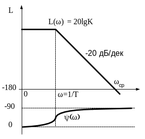 Ниже приведены характеристика апериодического звена 1-го порядка.