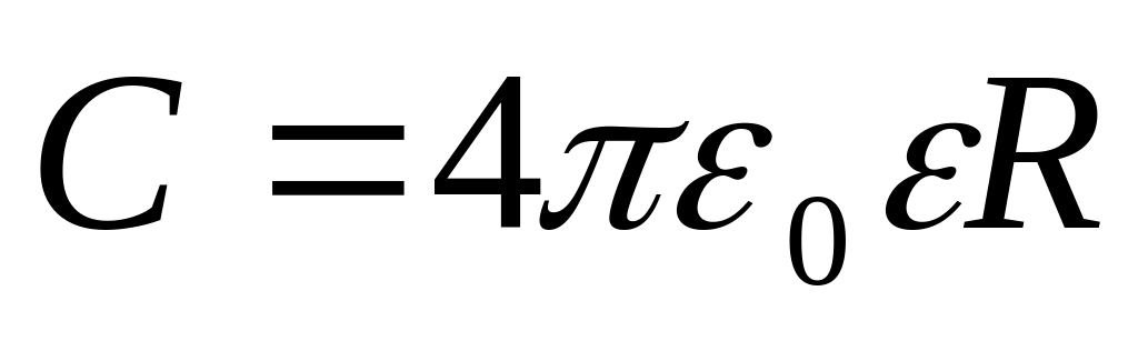 где - длина конденсатора, R1 и R2 – радиусы внутренней и наружной цилиндрических обкладок. Емкость сферического конденсатора определяется формулой: