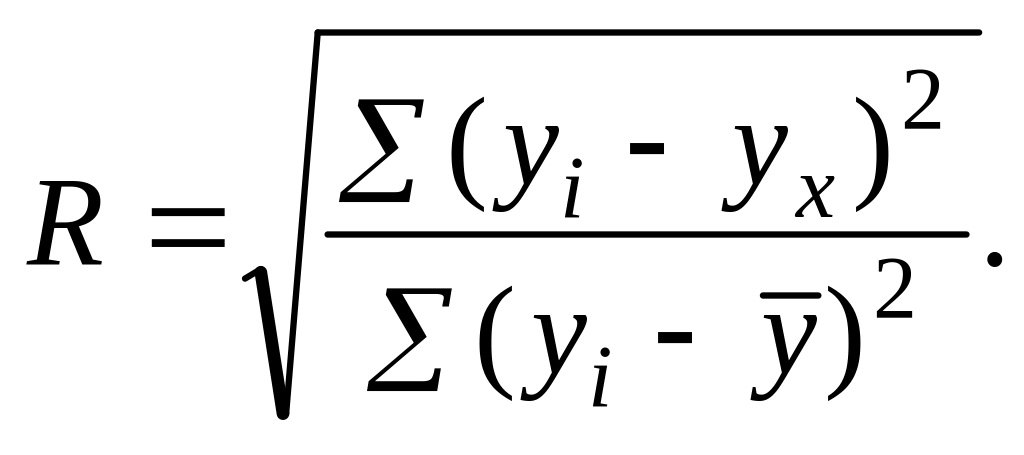 Одновременное влияние независимых переменных xi на зависимую переменную у измеряется коэффициентом множественной регрессии R. Чем меньше наблюдаемые величине отклоняются от поверхности множественной регрессии, тем больше значение R. Для линейной модели