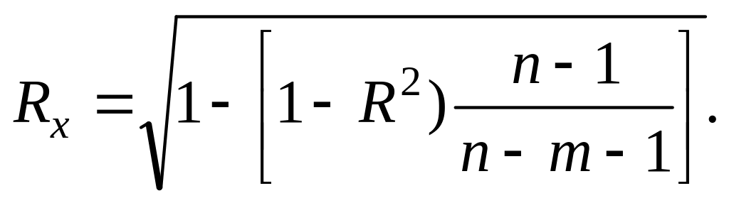 При небольшом числе наблюдений величина выборочного коэффициента множественной корреляции обычно завышается. Поэтому величину R корректируют: