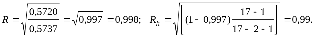 Находим теперь величину коэффициента множественной регрессии: