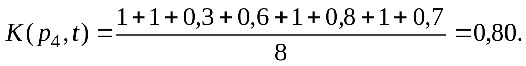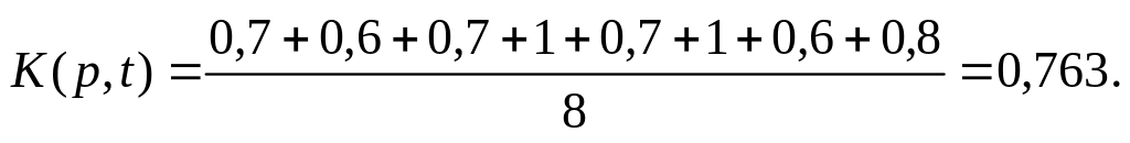 Построим коэффициент адекватности р относительно t следующим образом. Если