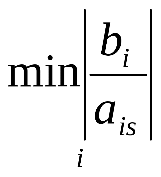 По оценочной строке выбираем переменную вводимую в базис. Находим наибольший по модулю отрицательный коэффициент в оценочной строке. Соответствующая этому столбцу переменная хs будет вводимой в базис, а сам столбец называется разрешающим.