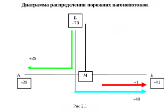 Порожние вагоны, следующие с участков через станцию «М» , перерабатываются по станции «М» и отправляются далее на прилегающие участки сборными поездами или маршрутами в направлении следования порожних вагонов. Из диаграммы следования порожняка в таблицу 2.3 заносятся порожние вагонопотоки, записываемые дробью.