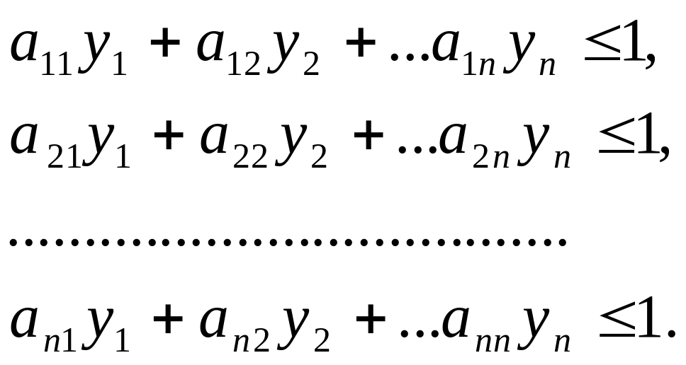 Задача (2.15.4), (2.15.6) является задачей линейного программирования. Для игрока может быть построена двойственная задача минимизации выигрыша (проигрыша), т.е. максимизации .