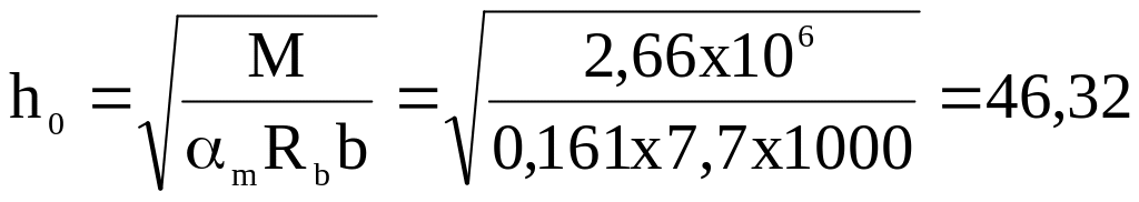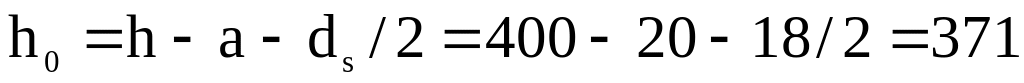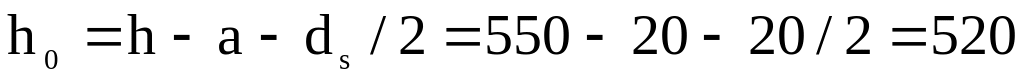 Знаходимо робочу висоту перерізу, попередньо задаючись діаметром поздовжньої робочої арматури 20 мм: