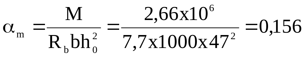 Задаємося оптимальним процентом армування плити в межах % = =0,5...0,7% %=0,6 та знаходимо відносну висоту стиснутої зони бетону