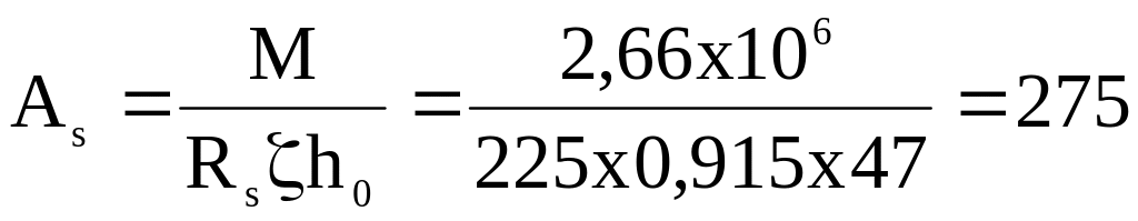 Визначаємо розрахункові характеристики бетону й арматури: Rb=7,7 МПа (для класу В15 і b2 =0,9 за 2, табл.8, стор. 12); Rs= 225 МПа (для класу А-І за 2, табл. 15, стор. 16).