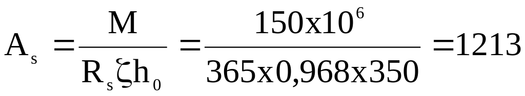 Знаходимо міцнісні характеристики бетону та арматури : Rb=13 МПа (для класу В25 і b2 =0,9 за 2, табл.8, стор. 12), Rs= 365 МПа (для класу А-ІІІ, 10...40 мм за 2, табл. 15, стор. 16).