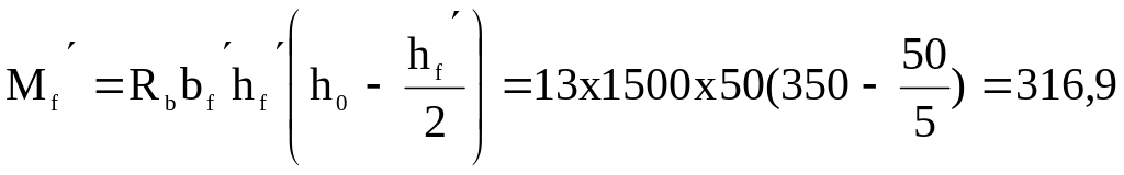 Перевіряємо виконання умови М Мf (150кНм316,9кНм) і робимо висновок: нейтральна вісь проходить у межах полички, й розрахунок площі поздовжньої арматури виконуємо за формулами для прямокутного перерізу, приймаючи за ширину балки ширину стиснутої полички bf=1500 мм ( 2, п. 3.22, стор. 25).