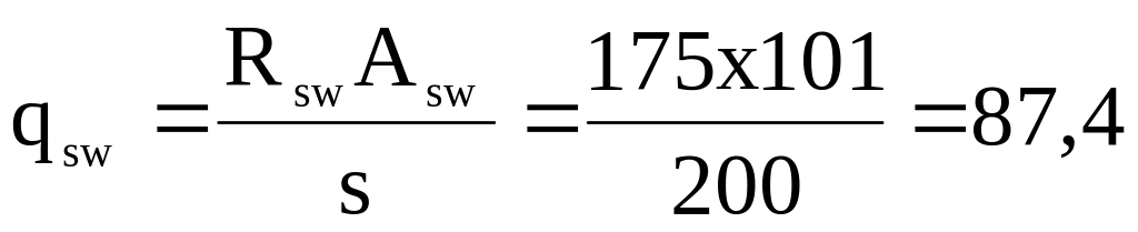 Задаємося діаметром та кроком хомутів: приймаємо 28АІ (розрахунковий опір поперечної арматури розтягу Rsw=175 МПа (2, табл. 15, стор. 16) із кроком 200 мм (конструктивні вимоги до кроку хомутів викладено в 2, п. 5.69, стор. 166).