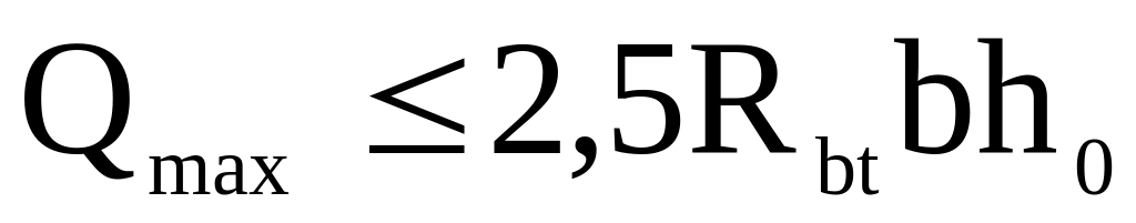 Перевіряємо міцність балки на дію поперечних сил за похилою стиснутою смугою між похилими тріщинами за умовою (2, п. 3.30, стор. 34-35)