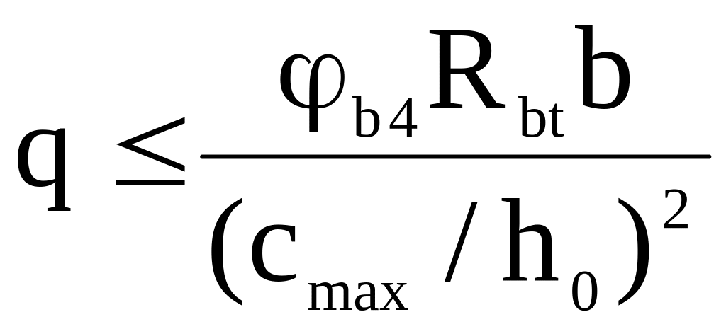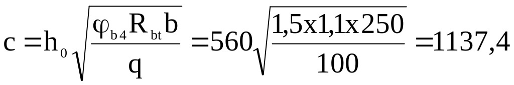 При розрахунках елементів на дію розподілених навантажень значення с знаходиться залежно від виконання умови 74 [2], стор. 40,