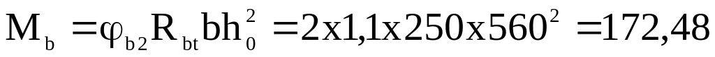Призмова міцність бетону Rb==15,5 МПа (для класу В30 і b2 =0,9 за 2, табл.8, стор. 12).
