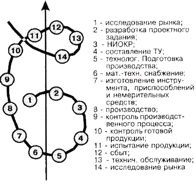 Дж. Джуран первым обосновал переход от контроля качества к управлению качеством. Им разработана знаменитая «спираль качества» (спираль Джурана) — вневременная пространственная модель, определившая основные стадии непрерывно развивающихся работ по управлению качеством (рисунок 1) и послужившая прообразом многих появившихся позже моделей. |
