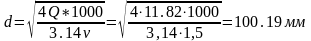 v - швидкість руху води в трубопроводах. Для тимчасових магістральних трубопроводів приймаємо v = 1,5 м/с.