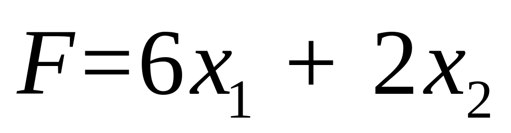 Пример 5. Пусть в рассмотренном выше примере 1 цена реализации единицы продукции Р1 и Р2 стала равна соответственно 6 и 2 ден.ед. Экономико-математическая модель задачи примет следующий вид.