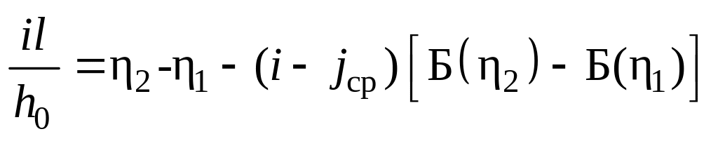 функции Бахметева, определяются в зависимости от относительных глубин η1, η2 и гидравлического показателя русла x. |