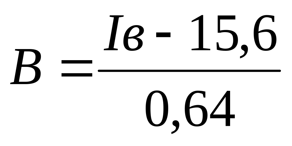 де В - показник втоми, відносних одиниць; 15,6 і 0,64 - коефіцієнт регресії.