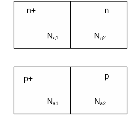 Если слои полупроводника одного типа проводимости, но с разной концентрацией примесей, то получается электронно -электронный (n+-n) и дырочно-дырочный (p+-p) переходы. (“+” обозначает повышенную концентрацию).