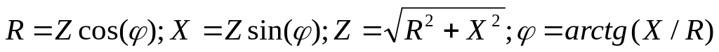 Параметры алгебраического представления и полярной формы комплексных сопротивления и проводимости связаны известными соотношениями: