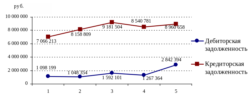 Рис.2.5 Динамика дебиторской и кредиторской задолженности