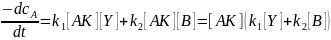 Для выражения концентрации Y через концентрации A и B запишем уравнения суммарных реакций, исключив концентрации катализатора и его комплексов, как не влияющих на уравнения материального баланса по реагентам ввиду малости концентрации катализатора (сi,0>>сK):