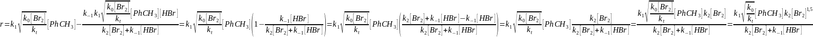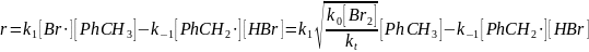 Вопрос №2 Выведите кинетическое уравнение термического бромирования толуола, учитывая, что одна из стадий развития цепи обратима: PhCH3 + Br. <=> HBr + PhCH2.