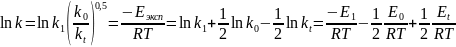 где E1 – энергия активации реакции 1, E0 – энергия активации реакции инициирования, Et – энергия активации реакции обрыва цепи.