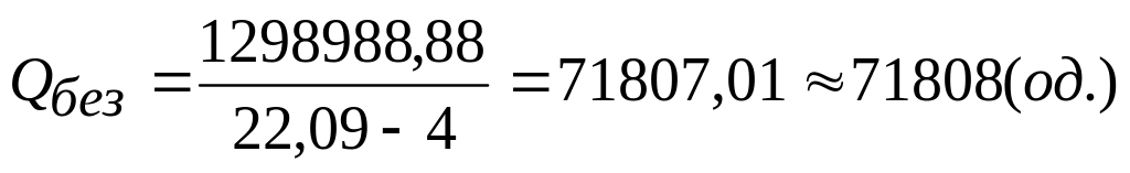 де Qбез – обсяг виробництва (продажу) товарів чи послуг, при якому досягається беззбитковість, од.;