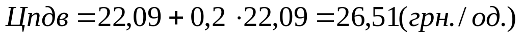 Ціну одиниці продукції і-го виду з врахуванням податку на додану вартість (основна ставка податку на додану вартість в Україні у 2010 році складала 20%) необхідно визначити за формулою: