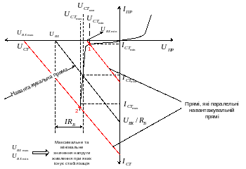 Графічна ілюстрація процесу підсилення наведена на рис. 13. При цьому, оскільки підсилювач здійснює підсилення лише змінної складової вхідного сигналу, розглядається робота схеми по змінному струму.
