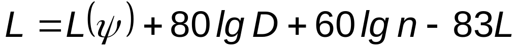 Загальний рівень шума вениляторів можна визначати за формулою, в дБ: