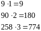 Естественными рассуждения будут такими: однозначных цифр 9, значит они пронумеруют 9 страниц; двузначных чисел 90 - они нумеруют 90 страниц и используют 90 . 2 = 180 цифр; трехзначных чисел 900 - они пронумеруют 900 страниц и используют 2700 цифр. Следовательно, для нумерации данных 357 страниц потребуются все однозначные и двузначные числа и часть трехзначных. Чтобы узнать, сколько трехзначных чисел потребуется для нумерации, надо из заданного числа вычесть "использованные" однозначные и двузначные числа: 357 - (9 + 90) = 258.