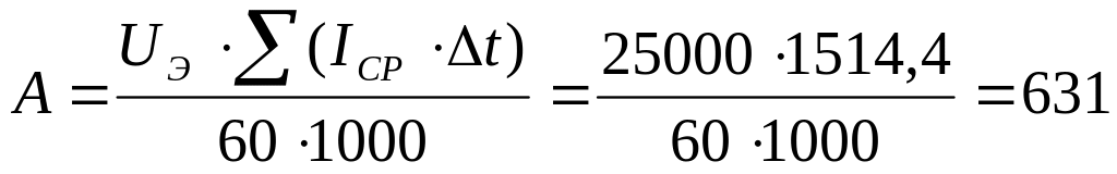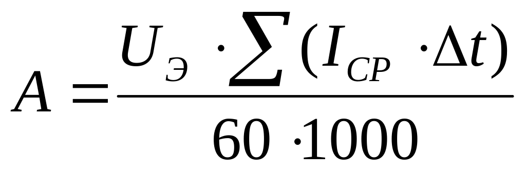 Расход электрической энергии (кВт·ч) электровоза на движение по участку пути определяется на основе зависимости I(S) и t(S) суммированием расходов электроэнергии по отдельным элементам времени определяется по формуле: