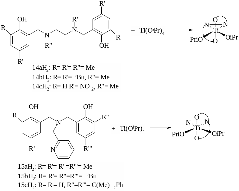 Рисунок 1.30 – Синтез комплексов титана с ONNO-тетрадентатными амино-бис-фенолятными лигандами